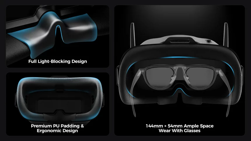 Les lunettes VR04 HD sont confortables, sans entrée de lumière notable, avec une navigation simple et un enregistrement DVR intégré. Point à retenir : le chargeur fourni nécessite une alimentation USB-C costaud — si votre chargeur mural n’est pas assez puissant, le voyant passe au rouge et ça ne charge pas.